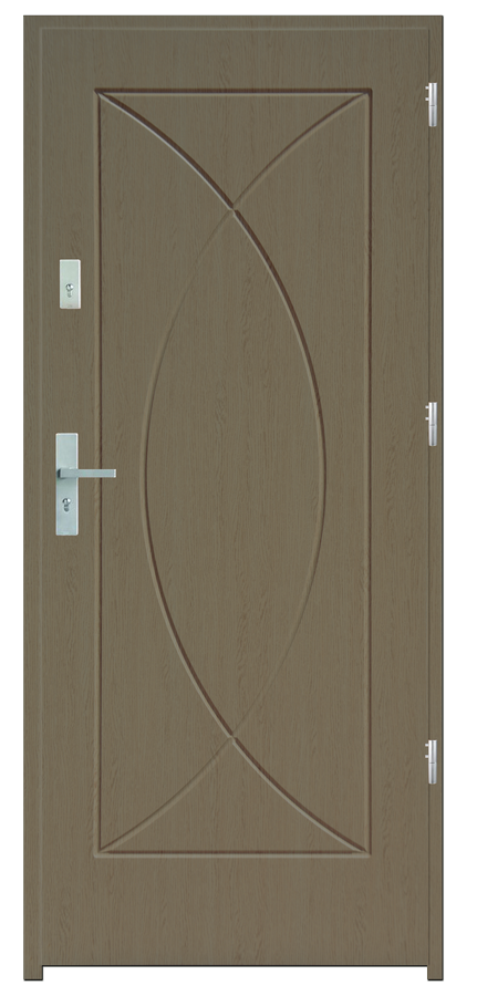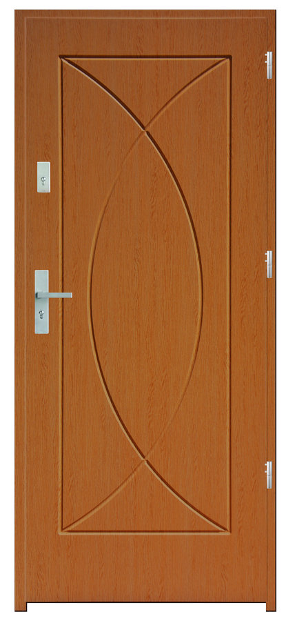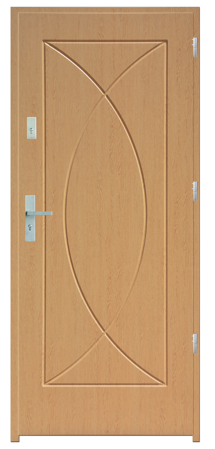 Skrzydło drzwiowe wykonane z klejonego wzdłuż i w poprzek drewna sosnowego. Jego wypełnienie stanowi płyta wiórowa pełna i styropian twardy. Takie wykonanie zwiększa wytrzymałość konstrukcji.