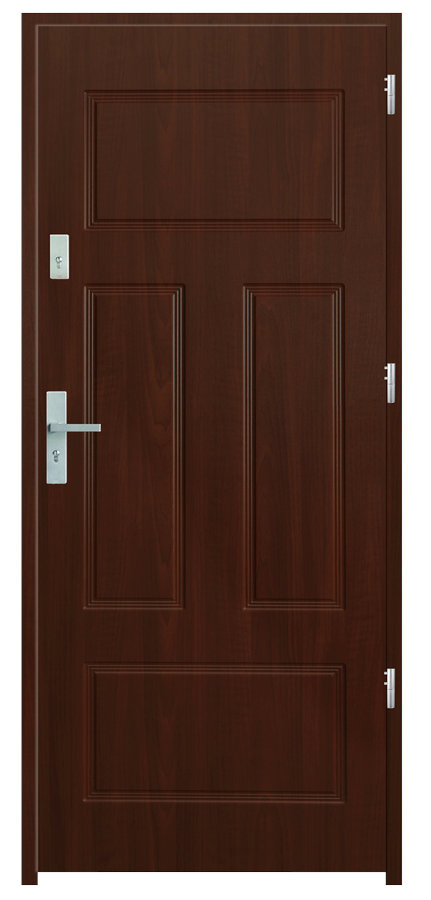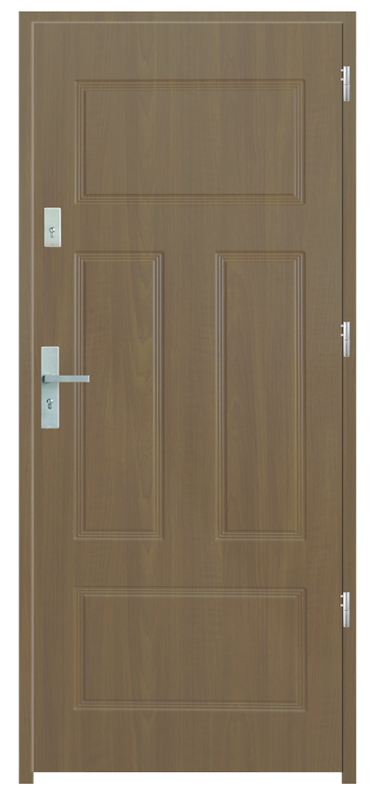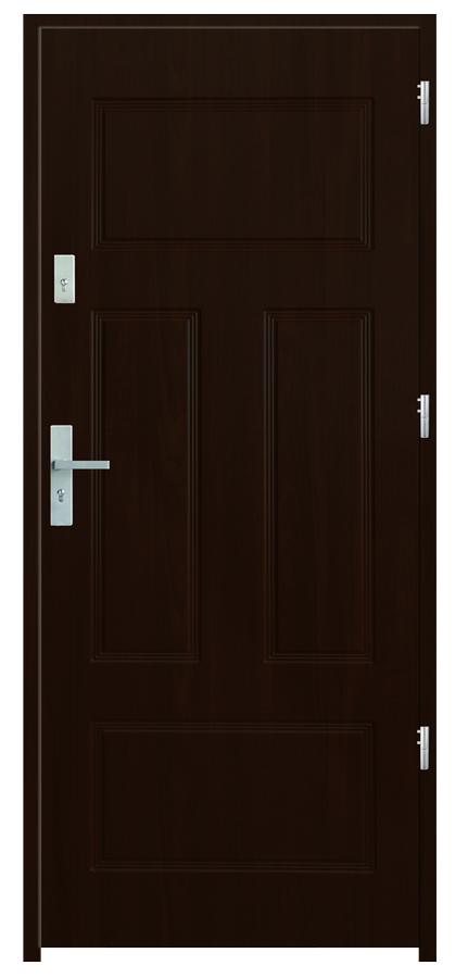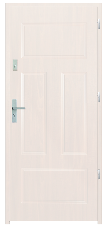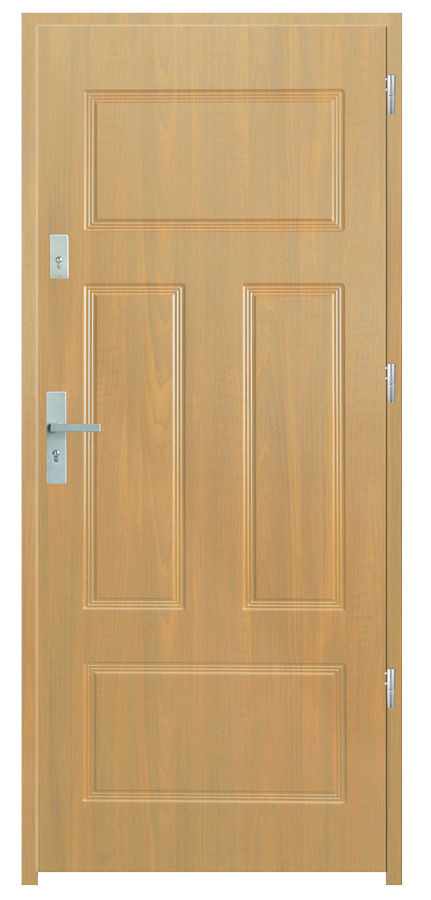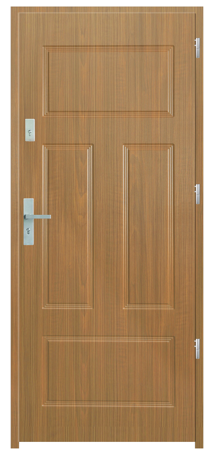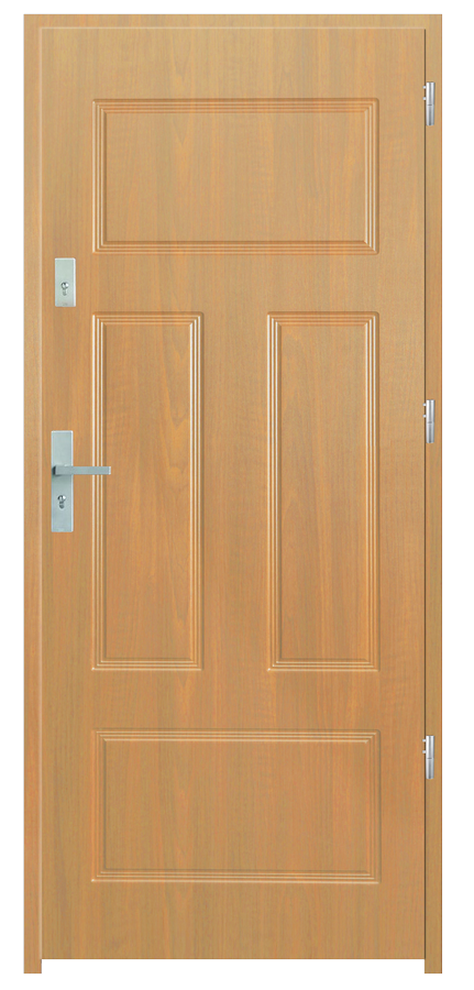 Skrzydło drzwiowe wykonane z klejonego wzdłuż i w poprzek drewna sosnowego. Jego wypełnienie stanowi płyta wiórowa pełna i styropian twardy. Takie wykonanie zwiększa wytrzymałość konstrukcji.